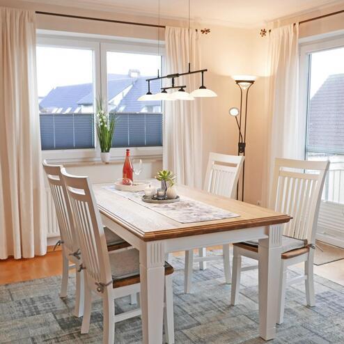 Gönnen Sie sich eine Auszeit vom Alltag und genießen Sie gemeinsame Stunden zu zweit in unserer schönen Schleiregion. Unsere Ferienwohnung im 1. Obergeschoss liegt nur 150 Meter vom Kappelner Hafen entfernt und bietet auf ca. 70 m² viel Raum zum Wohlfühlen. Große Glasfronten lassen die Innenräume besonders hell und freundlich erstrahlen und eine liebevolle Einrichtung mit maritimen Details geben dem wohlverdienten Urlaub einen ganz besonderen Flair! Herrliche Sonnenstunden können Sie sowohl vom großen Balkon mit seitlichem Schleiblick als auch von der wohnungseigenen, geschützten Terrasse mit Sitzmöbeln und Sonnenliegen aus genießen.