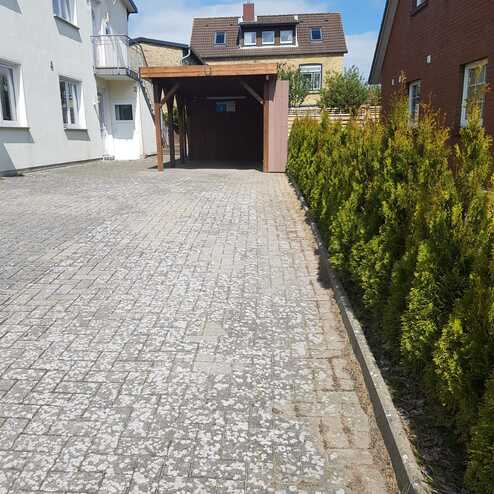 Ein kostenfreier PKW Stellplatz steht Ihnen direkt vor der Wohnung mit Carport zur Verfügung. Es gibt einen abschließbaren Schuppen für Fahrräder mit Stromanschluß zum Laden der E-Bikes. Angelgeräte können im Schuppen abgestellt werden.