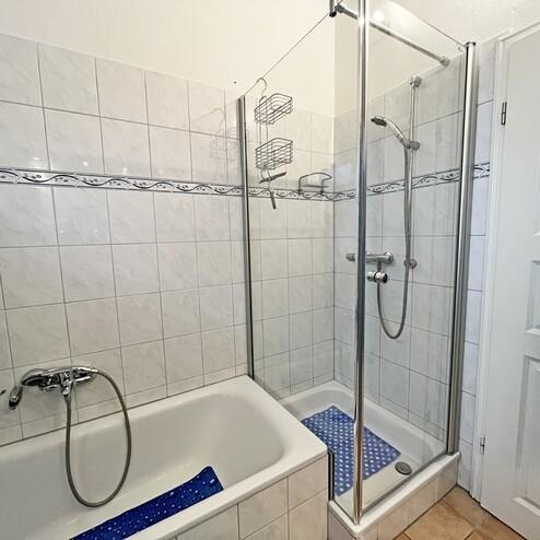 - Dusche mit Regenduschkopf und Ganzglasduschkabine
